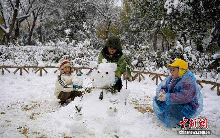 12月13日,济北年夜亮湖畔,市平易近堆雪人。中新社记者 弛怯摄